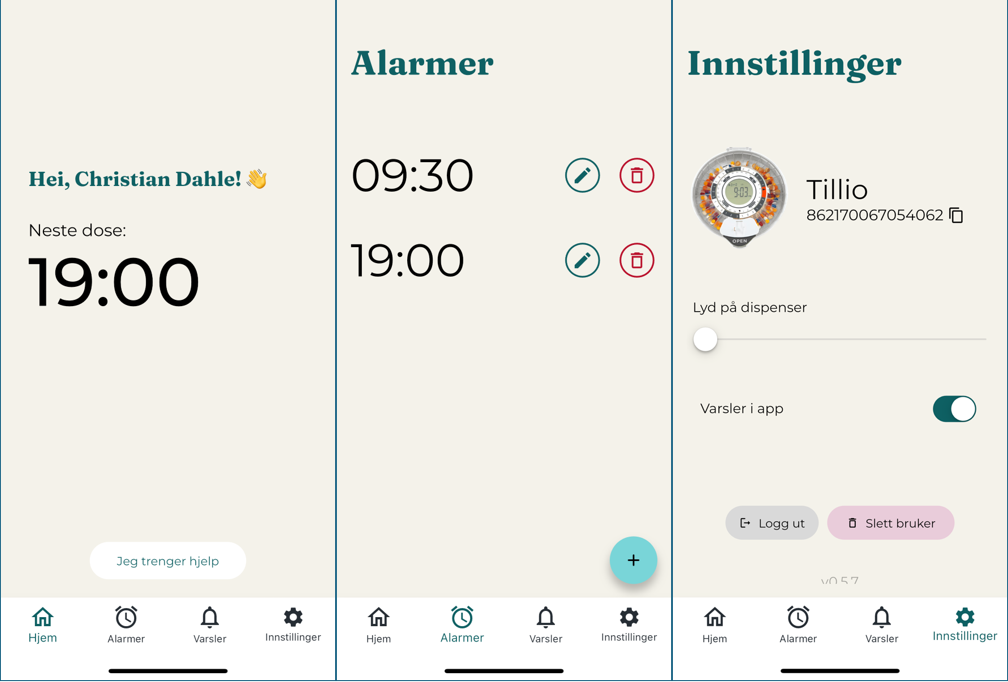 - Tillio kommer også med en app som gjør at du får påminnelsen på telefonen din. Som et betryggende alternativ kan du gi tilgang til at dine nærmeste også kan følge med på om medisinene blir tatt. Om uhellet skulle være ute vil noen oppdage at du ikke har tatt medisiner og kunne sjekke om alt er i orden.